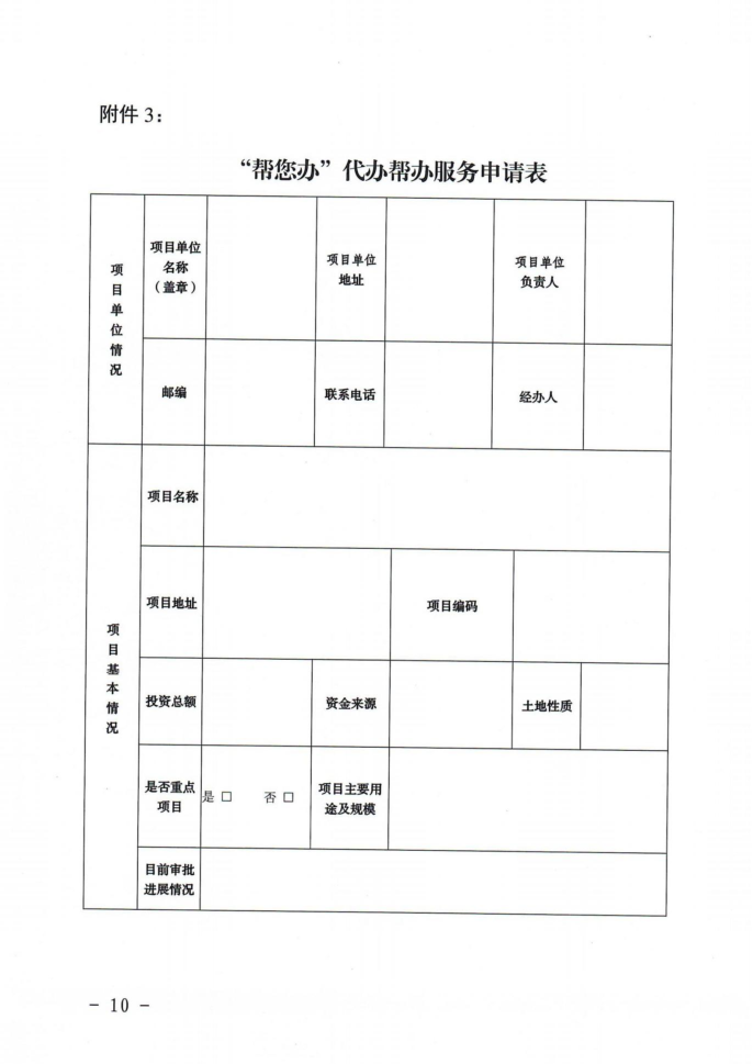 一 、配合填写 《“帮您办”代办帮办服务申请表》 ,编制项目申报计划 ,组织项目申报材料 ,在代办帮办服务窗口指导下进行有序申报;