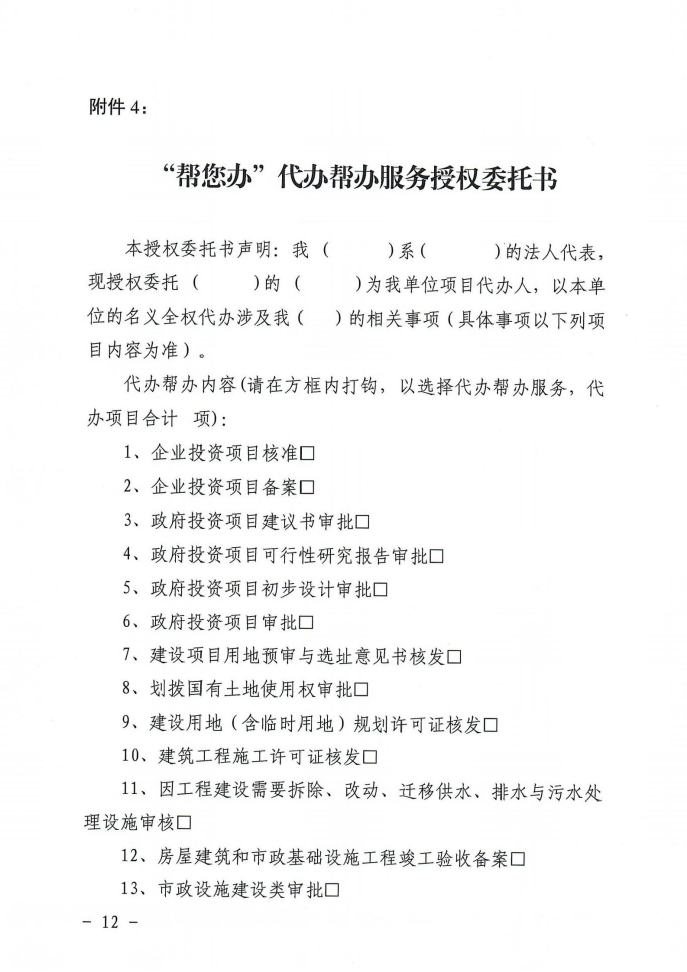 兹有 “帮您办”代办帮办项目 (项目名称) (项目编码 : ),现