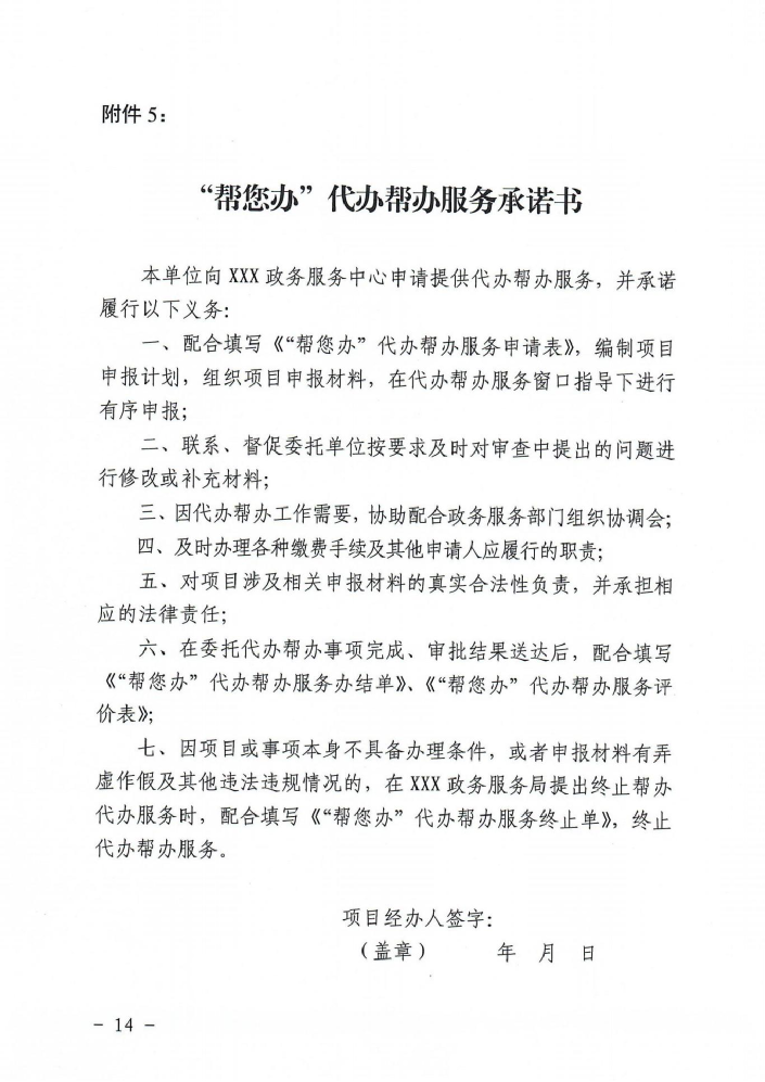 “帮您办”代办帮办服务承诺书