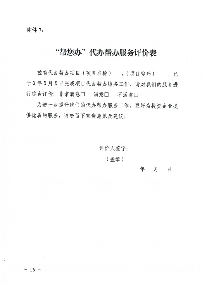 为进一步提升我们的代办帮办服务工作 ,更好的为企业提供优质的服务 ,请您留 下宝贵意见及建议 :