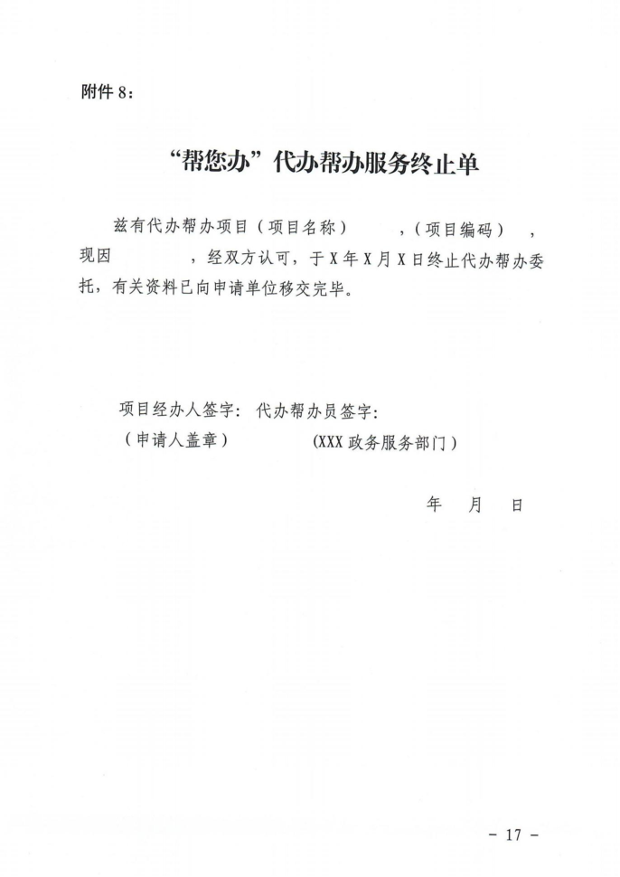 “帮您办”代办帮办服务终止单