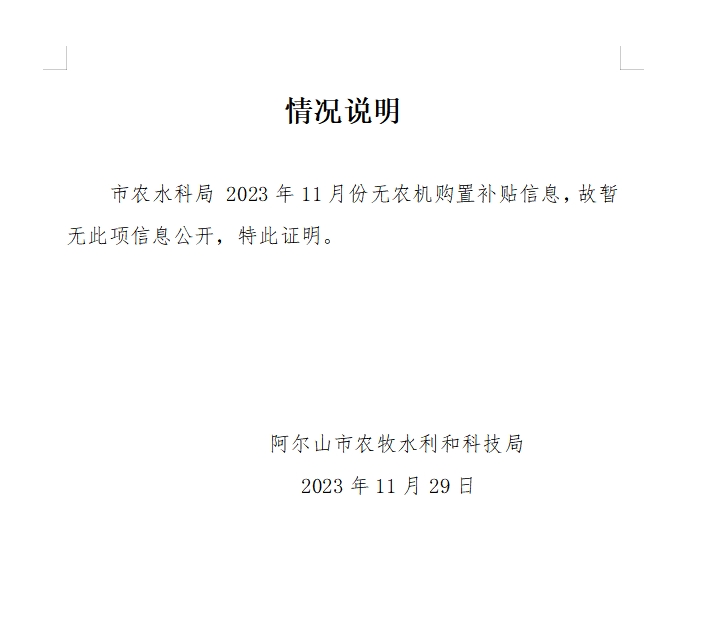关于阿尔山市2023年11月份无农机购置补贴信息发布的情况说明