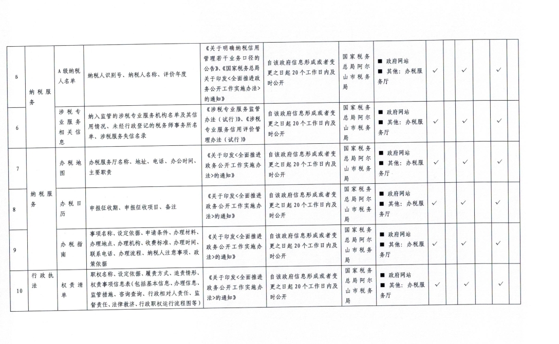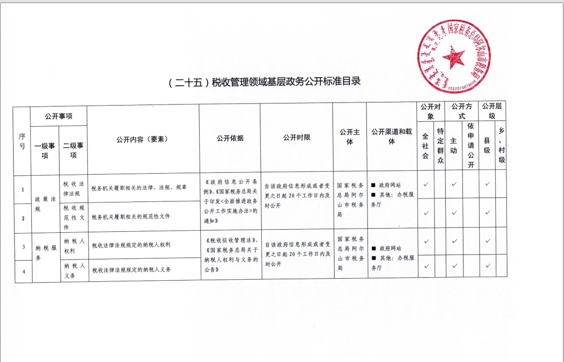 税收管理领域基层政务公开标准目录(2024)