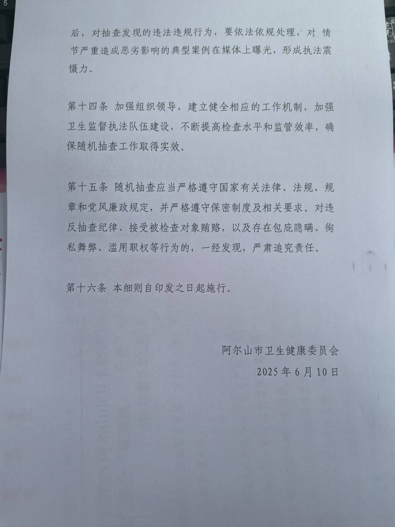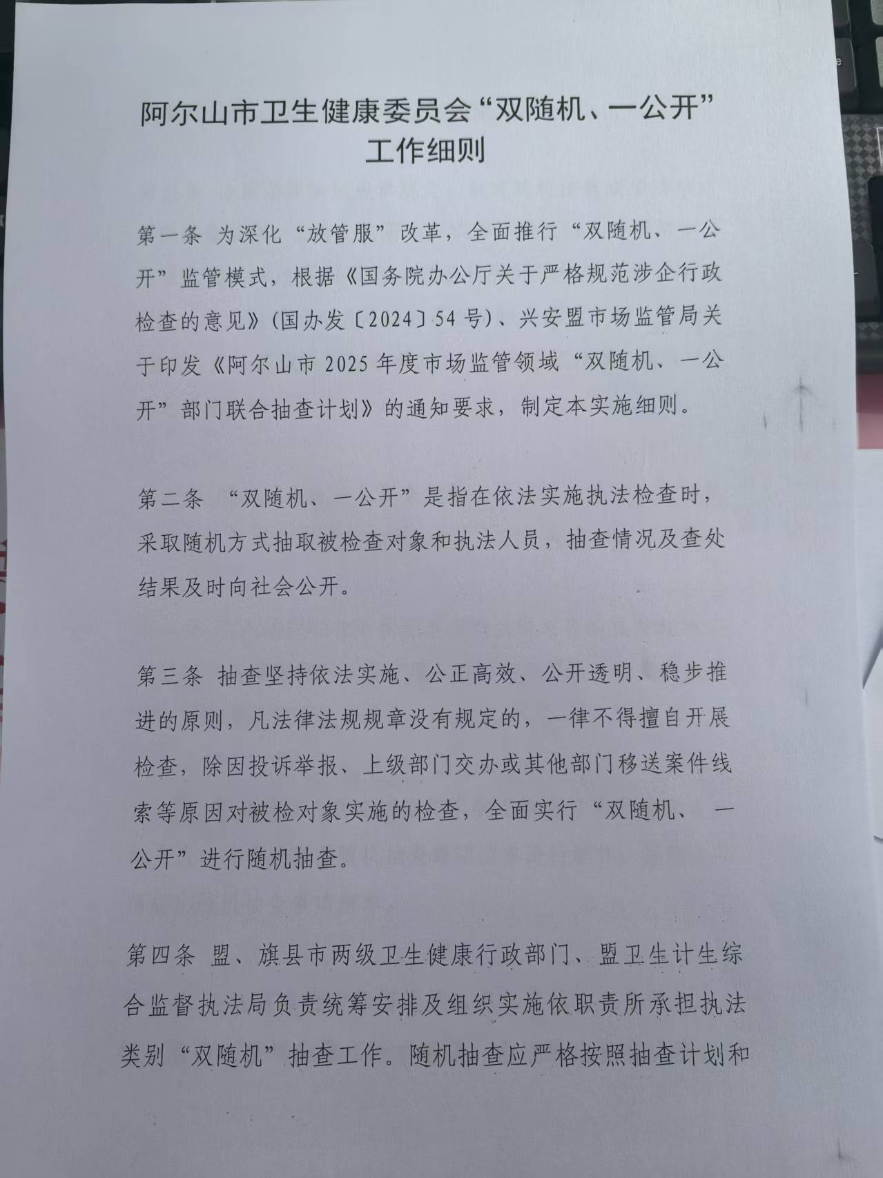 【医疗卫生】阿尔山市卫生健康委员会“双随机、一公开”工作细则