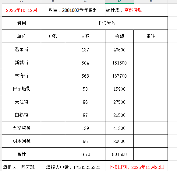 高龄津贴10-12月
