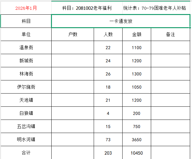 70-79困难老年人补贴1月