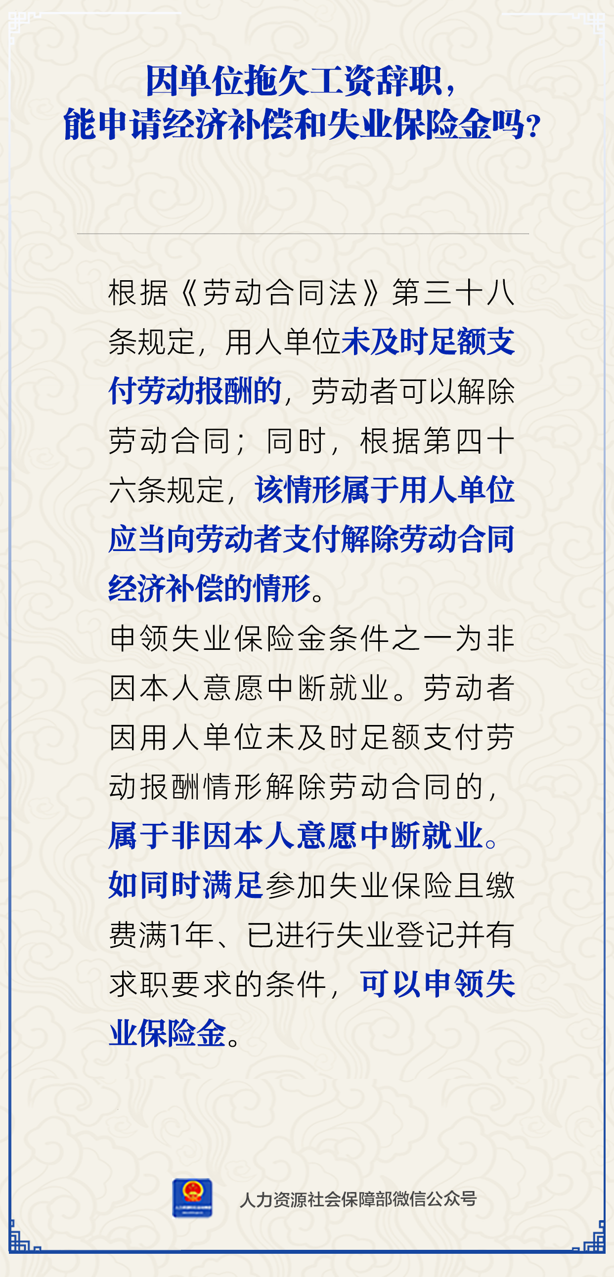 因单位拖欠工资辞职,能申请经济补偿和失业保险金吗?