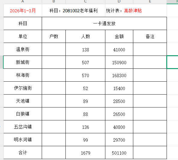 高龄津贴1-3月